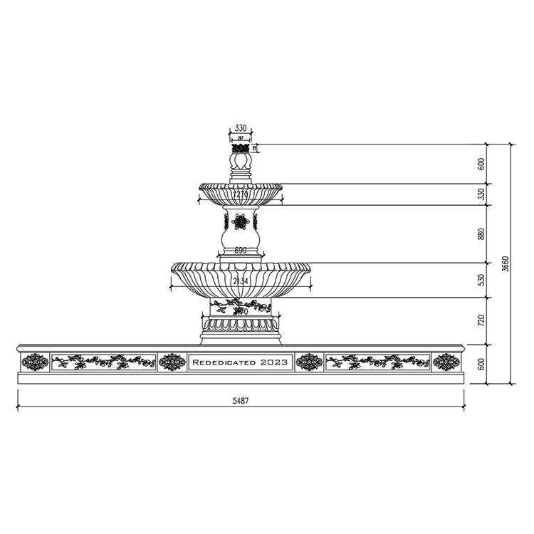 Diamètre de la fontaine : 160CM La hauteur de la fontaine :260CM Ou à la demande de l'acheteur |