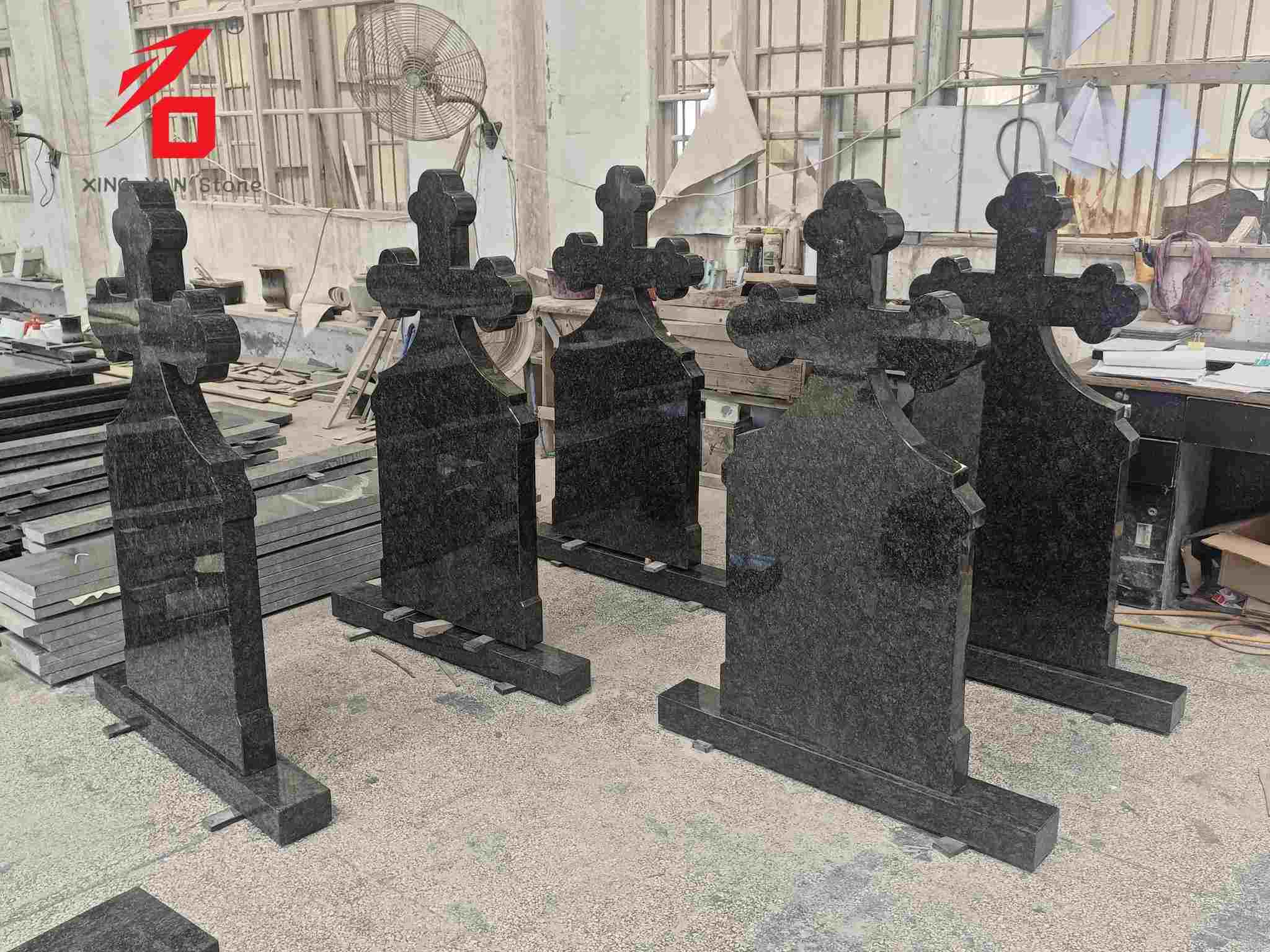 Matériau : Le granit noir haute densité est sélectionné, présentant des propriétés de pierre denses et dures, résistant aux intempéries et à l'érosion. La surface subit un traitement de polissage fin, offrant une brillance élevée et une texture uniforme. Conçu pour un placement extérieur à long terme, il résiste à la décoloration et à la déformation, garantissant ainsi la durabilité et l'intégrité visuelle de la pierre tombale.