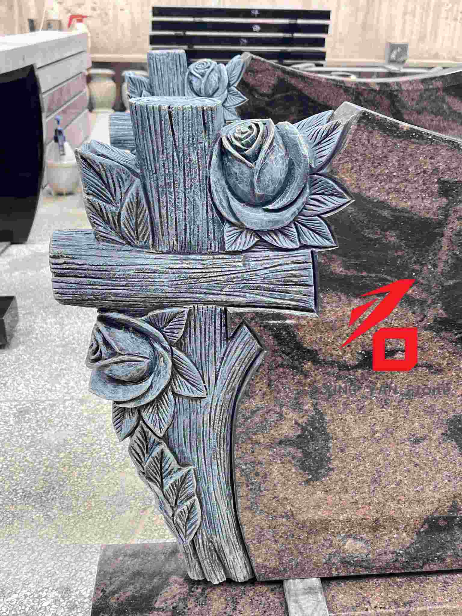 Artisanat : utilise une technique de relief 3D, avec la croix présentant une texture de grain de bois et les motifs de roses et de feuilles méticuleusement représentés. La décoration et la sculpture principale en pierre sont parfaitement intégrées, garantissant la stabilité structurelle.
