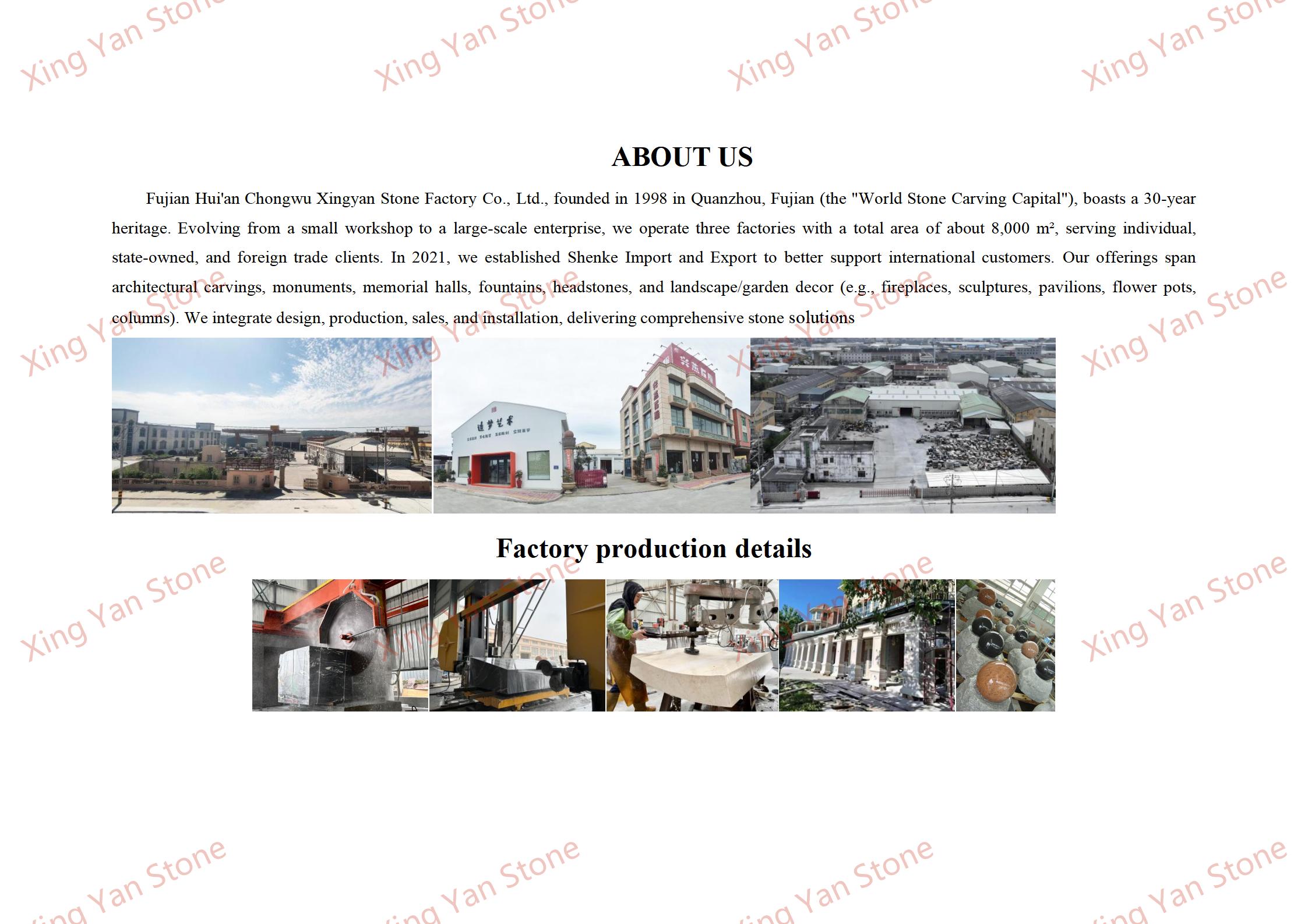 Services de personnalisation : la taille de la pierre tombale peut être ajustée pour répondre aux exigences (hauteur standard de 1,2 à 1,8 mètres), et des inscriptions telles que les noms, les dates de naissance et de décès et les éloges funèbres peuvent être ajoutées. La couleur de la pierre peut également être personnalisée ;