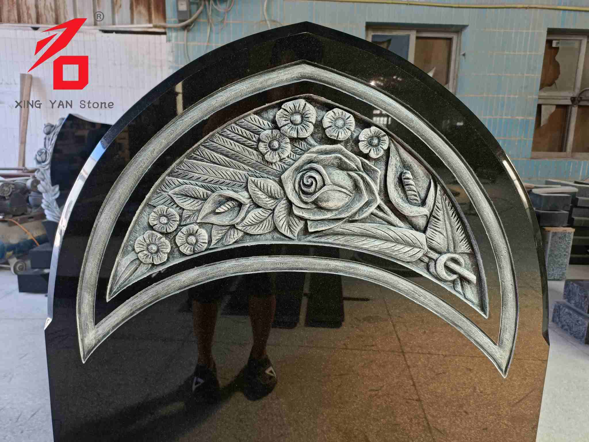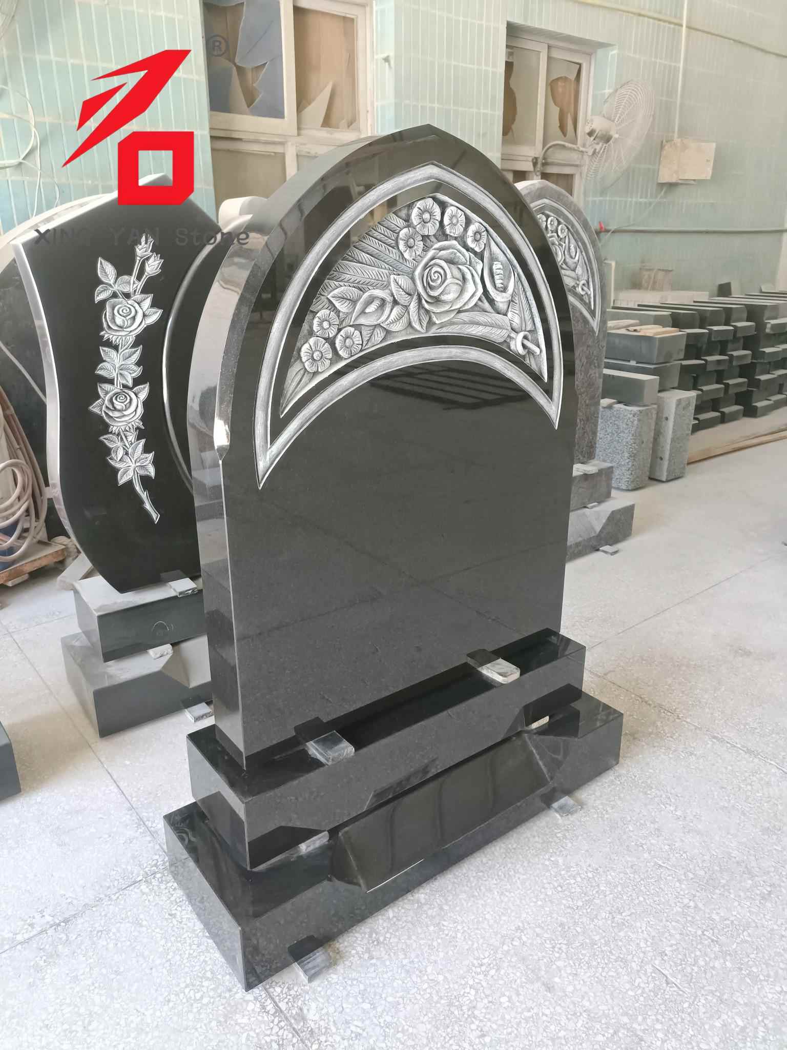 Style de design : la forme incurvée associée aux éléments en relief de roses transmet une signification commémorative qui allie douceur et solennité, adaptée pour exprimer un souvenir profond du défunt.