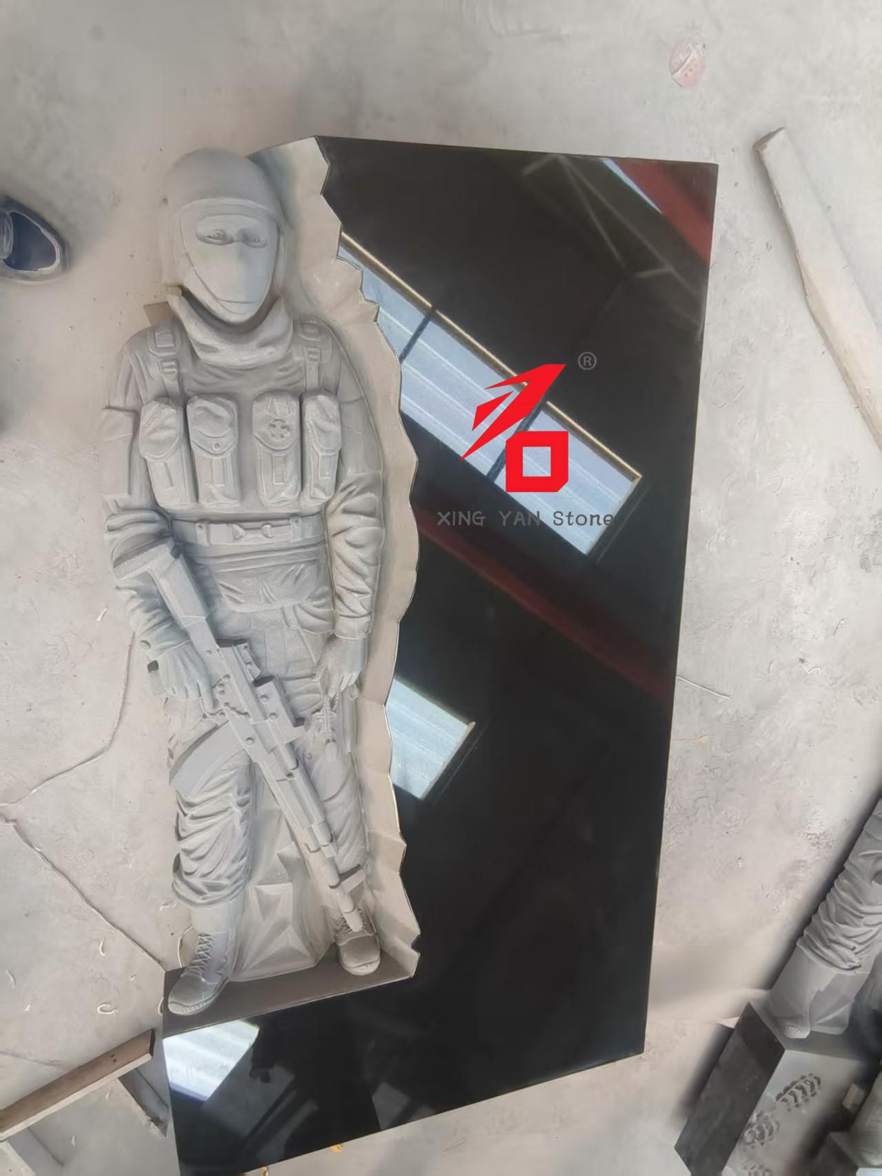 Artisanat : grâce à des techniques de relief tridimensionnel et de sculpture sur pierre solide, les détails de l'image du soldat (équipement, armes, etc.) sont affichés de manière claire et réaliste ;