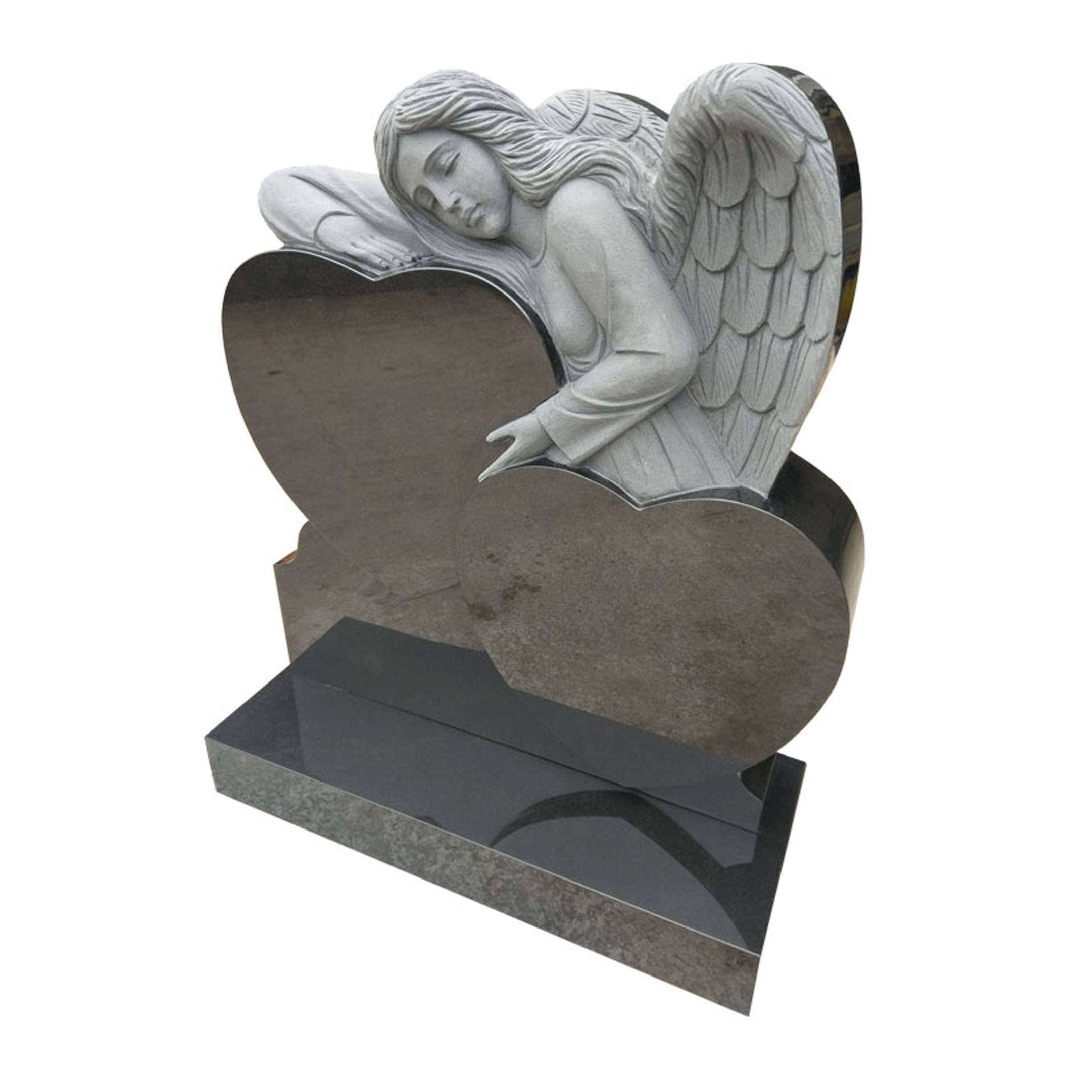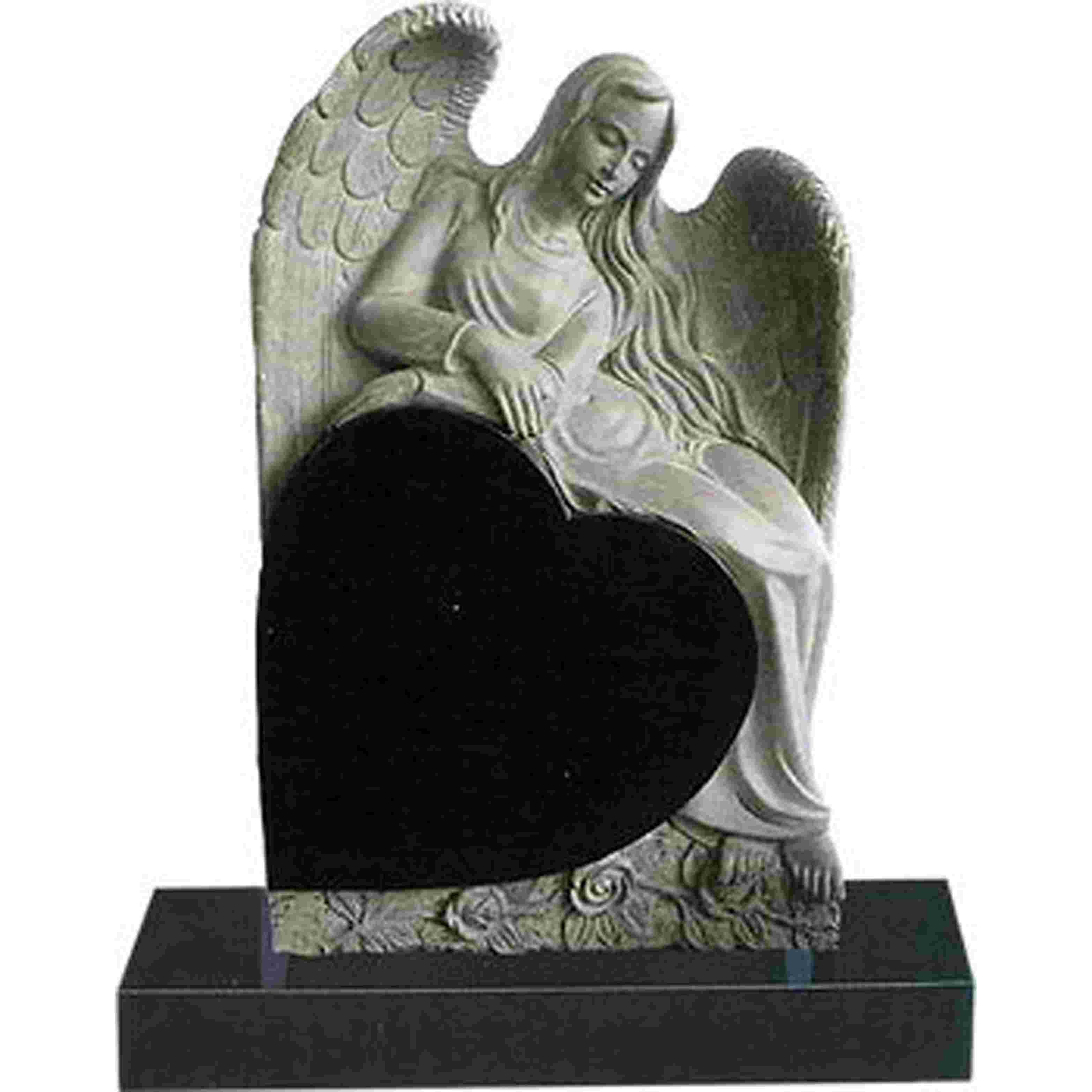 L'ange s'appuya contre la pierre tombale en forme de cœur |
