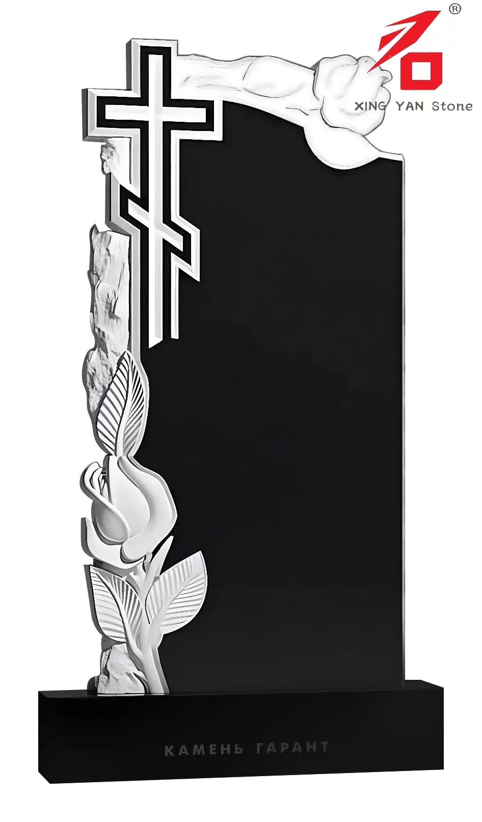 expression émotionnelle. Le granit noir symbolise l'éternité et la profondeur, la croix